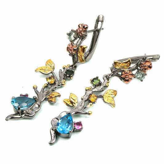 Blautopas Sky Blue Rhodolit Pfau Ohrringe