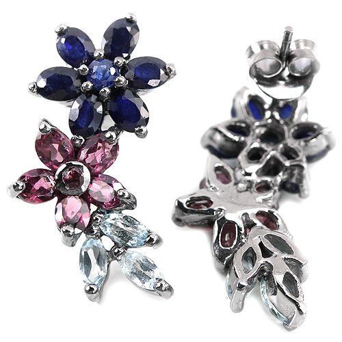 Saphir Rhodolit Blautopas Sky Blue Ohrringe