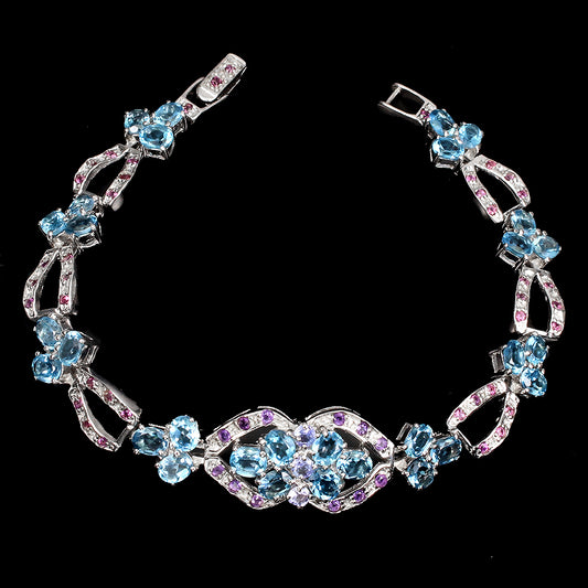 Blautopas Swiss Blue Amethyst Rhodolit Tansanit Armband