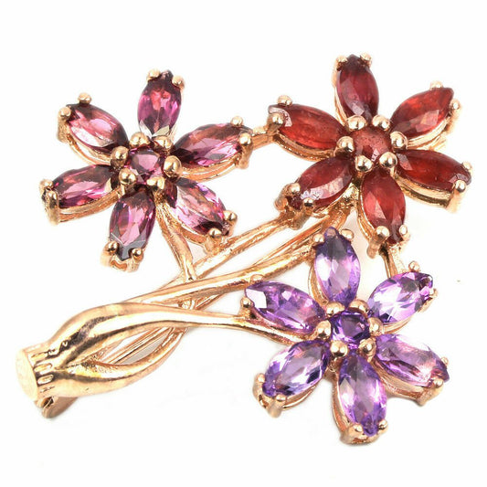 Amethyst Rubin Rhodolit Blume Brosche