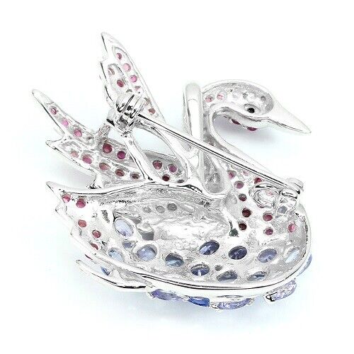 Tansanit Rubin Saphir Schwan Brosche