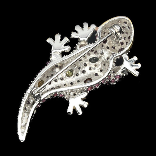 Saphir Rhodolit Rubin Gecko Brosche