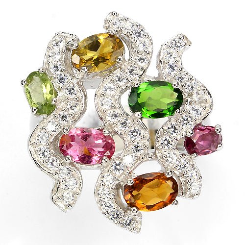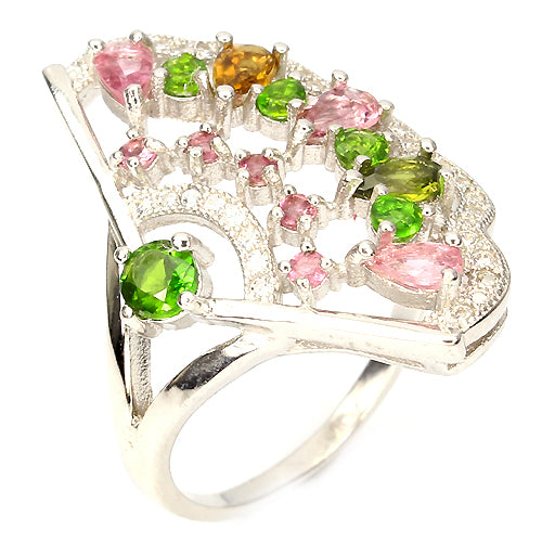Turmalin Russischer Diopsid Fächer Ring Gr. 58
