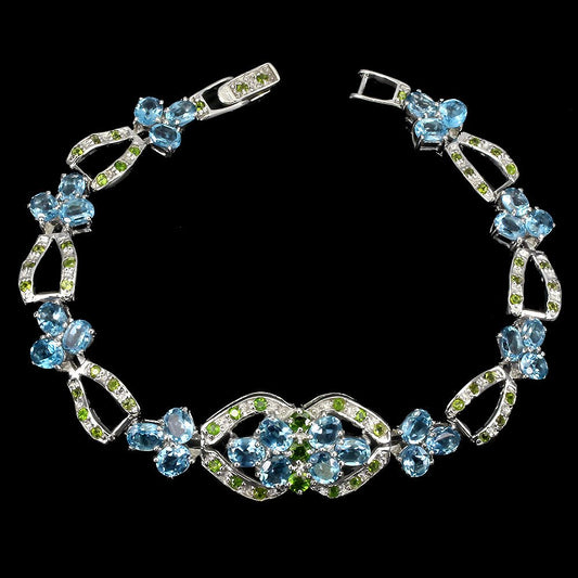 Blautopas Swiss Blue Russischer Diopsid Armband