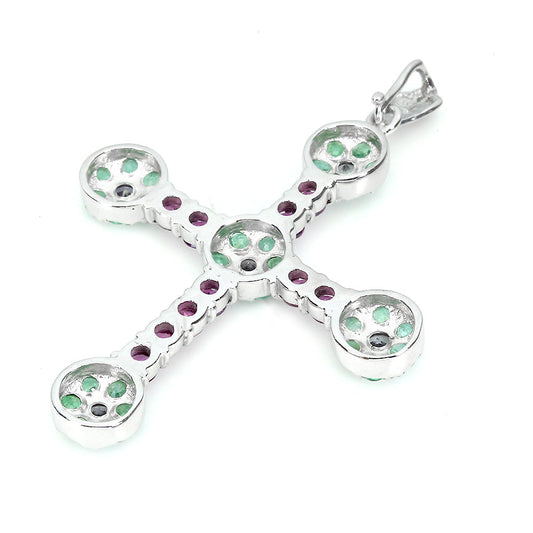 Smaragd Tansanit Rhodolit Diopsid Kreuz Anhänger