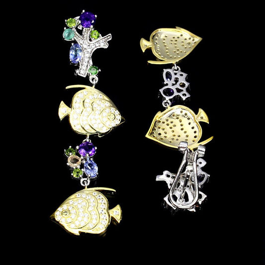 Amethyst Russischer Diopsid Tansanit Saphir Fisch Anhänger
