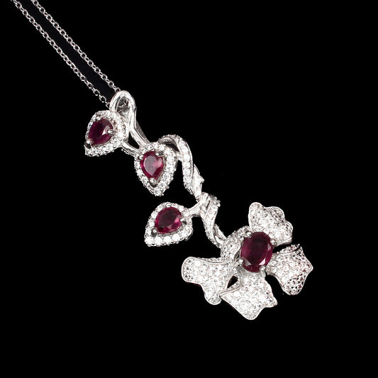 Rubin Blumen Anhänger mit Halskette
