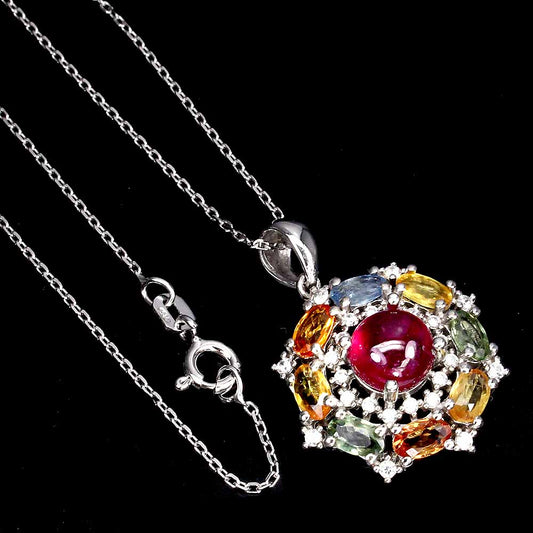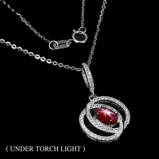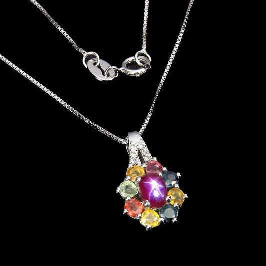 Sternrubin Saphir Weißtopas Anhänger mit Halskette