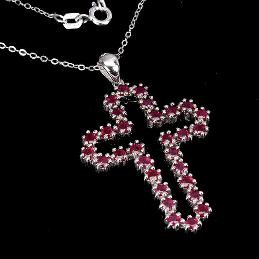 Rhodolit Kreuz Anhänger mit Halskette