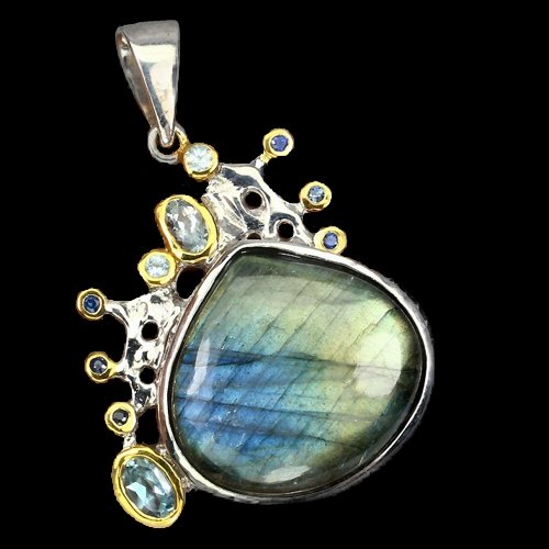 Labradorit Aquamarin Saphir Anhänger
