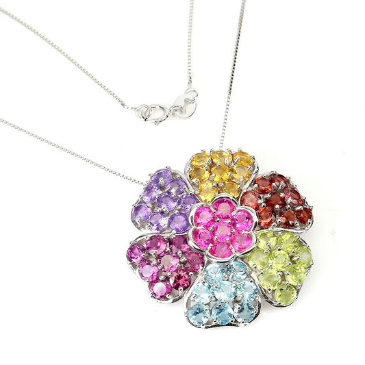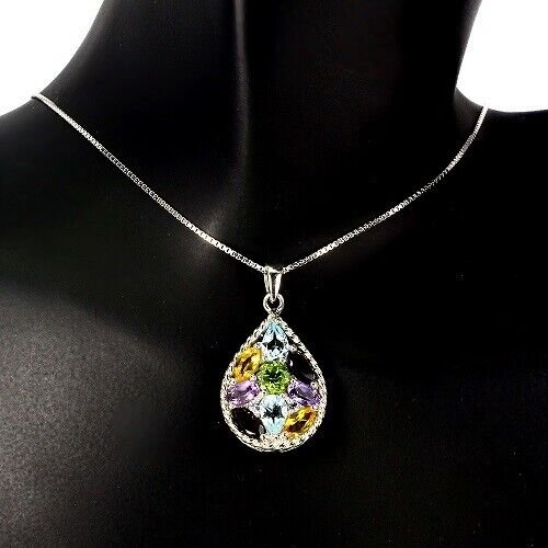 Rhodolit Blautopas Citrin Peridot Anhänger mit Halskette