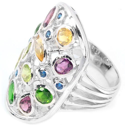 Russischer Diopsid Rhodolit Peridot Citrin Saphir Ring Gr. 50