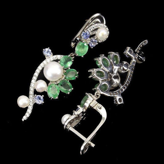 Smaragd Tansanit Perle Ohrringe