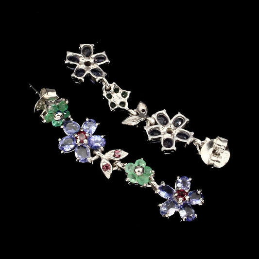 Tansanit Smaragd Rhodolit Ohrringe
