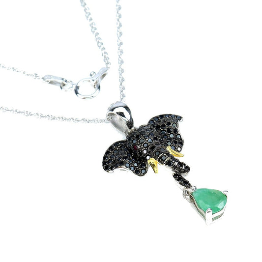 Smaragd Spinell Elefant Anhänger mit Halskette