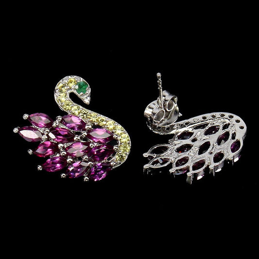 Rhodolit Saphir Smaragd Schwan Ohrringe