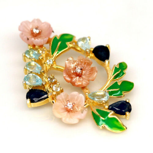 Tansanit Zirkon Saphir Perlmutt Anhänger
