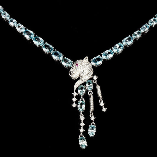 Blauer Zirkon Raubkatze Collier